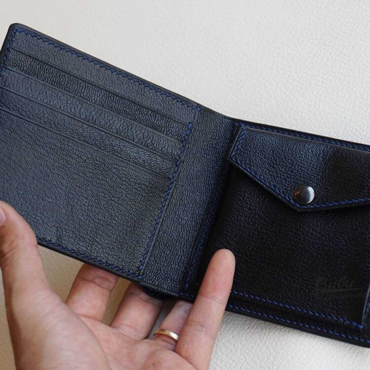 Dark Blue Ostrich leg wallet, Handcrafted Men’s leather wallet WL048