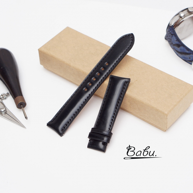 Shinki Hikaku Shell Cordovan leather watch band, Black leather watch strap SW288