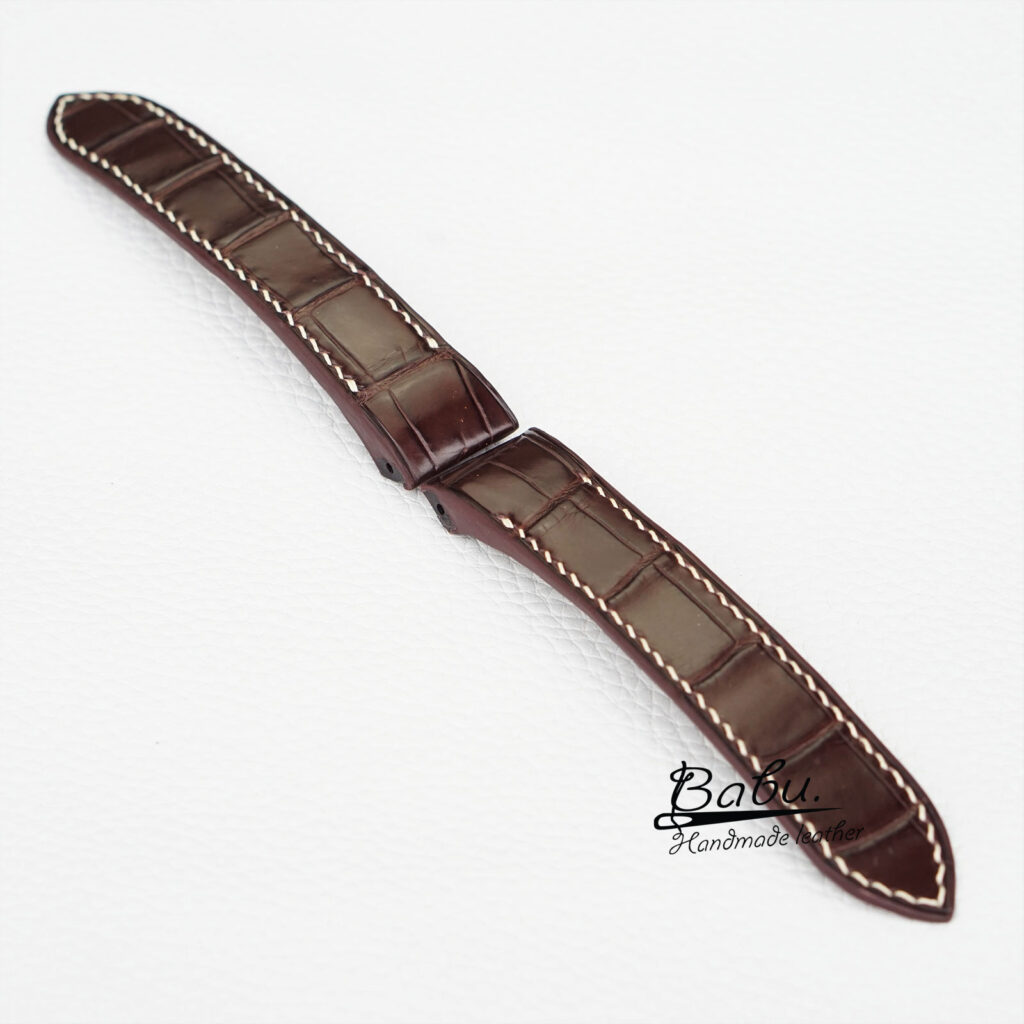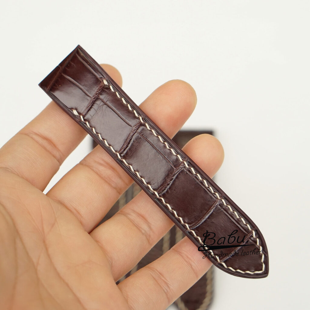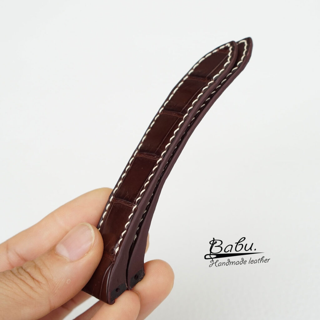 * The upper side is made of Premium Alligator leather. It’s famous for its firm texture and long-lasting durability. We also kept the natural grid of Alligator grain without too much modification.
