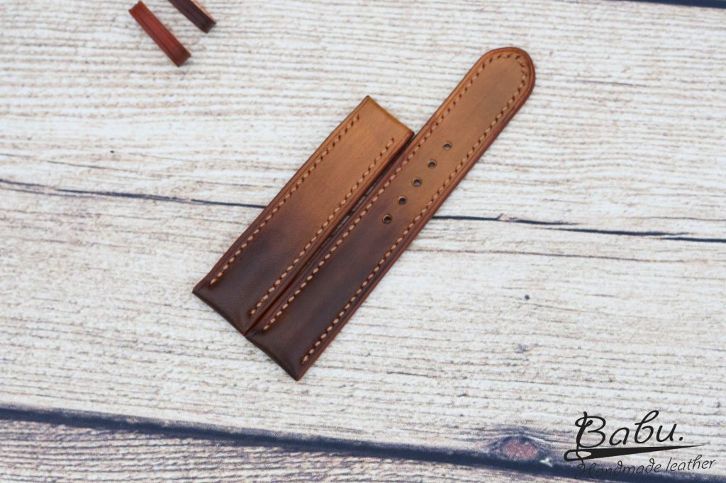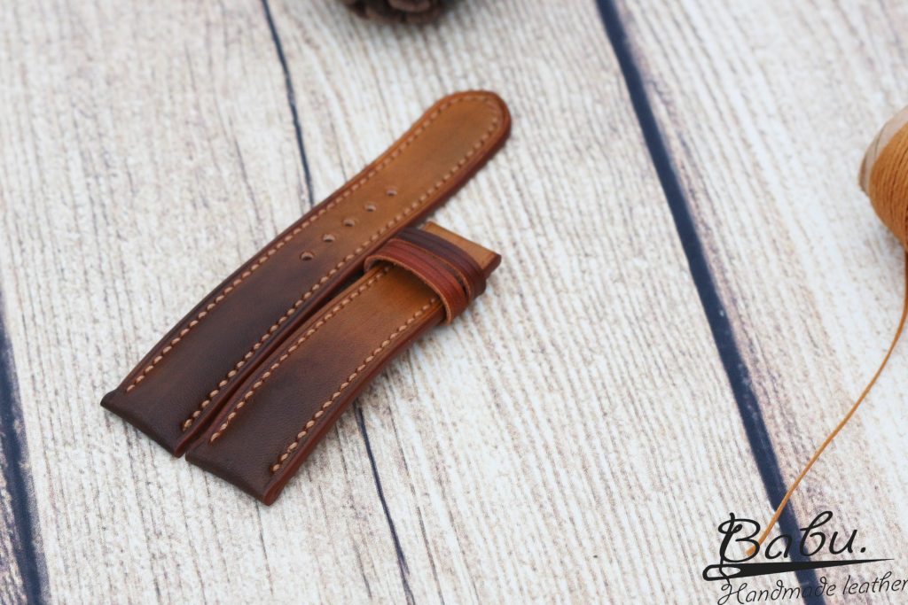 Our leather watch strap hand crafters make our product without any kind of mechanical use. We use the traditional ways of leather watch straps handcrafting to make the straps stylish. Our leather bands are customized to match perfectly with the design and request of the watch of the client. This ombre brown vegetable tanned leather watch band is one typical example. Base on the request of the client, we dye the leather in new style called Omber. We blend gradually one color hue to another to move tints and shades from light to dark. This step creates the gradual transformation of color. This technique has become a popular feature for hair coloring, nail art. Sometime it uses in home decorating and graphic design.