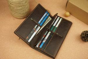 It’s handcrafted from Cow leather. Stitched with french linning thread using well known saddle stitching. The wallet for both men and women has a unique easy to use and carry design with an impressive storage capacity. With 10 card slots and 2 compartments for banknotes, it’s easy to carry all your important cards, banknotes, meet all your daily needs. Card slots of new leather wallet are flexible, with use your wallet, you will feel softer, fold better.